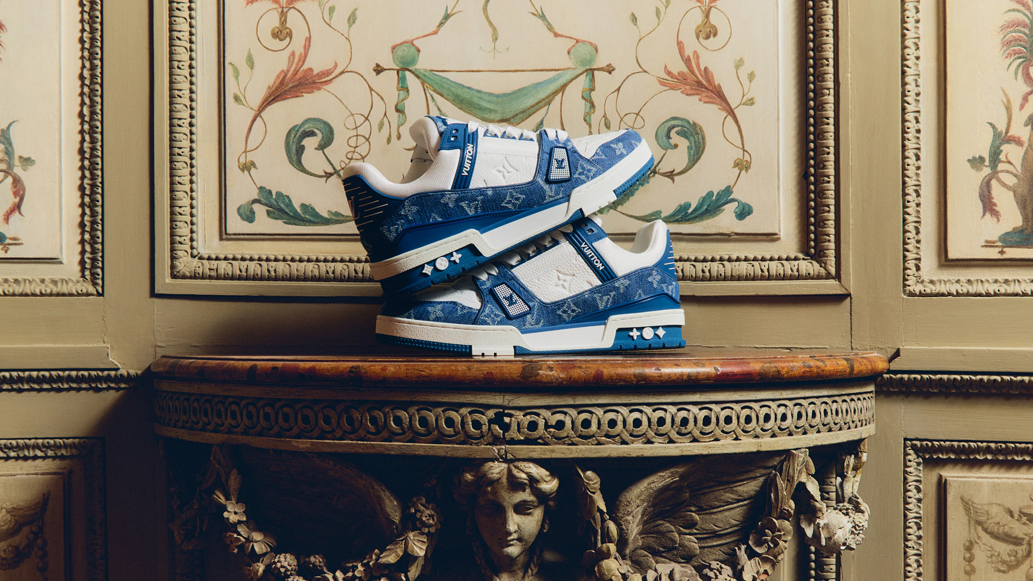 LOUIS VUITTON Trainer 2025 Spring/Summer Men’s collection denim logo finish low-top sneakers for men and women