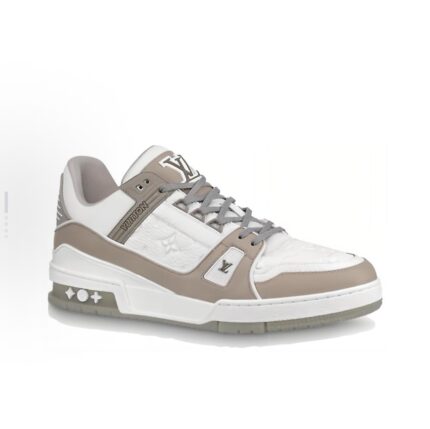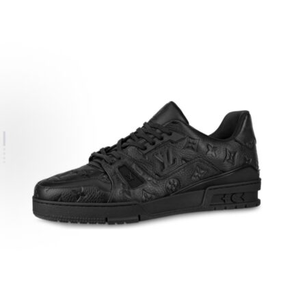 The LV Trainer sneaker is reinterpreted this season in a smart monochrome version in grained calf leather partially decorated with the Monogram pattern. Originally designed by Virgil Abloh, this iconic model was inspired by vintage basketball sneakers. It is notable for its rubber signatures and elaborately constructed upper, made of more than 80 pieces