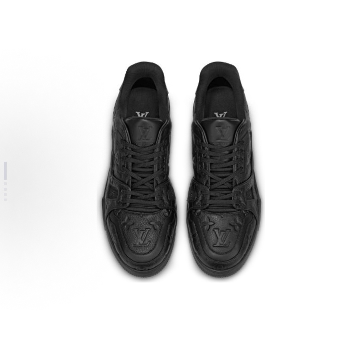 The LV Trainer is a denim LVers Damier pattern designed by menswear art director Pharrell Williams. The Vuitton logo and LV letters are integrated into the industrial upper, and the delicate outsole is lit by Monogram flowers. The original design was created by Virgil Abloh and is inspired by retro basketball shoes