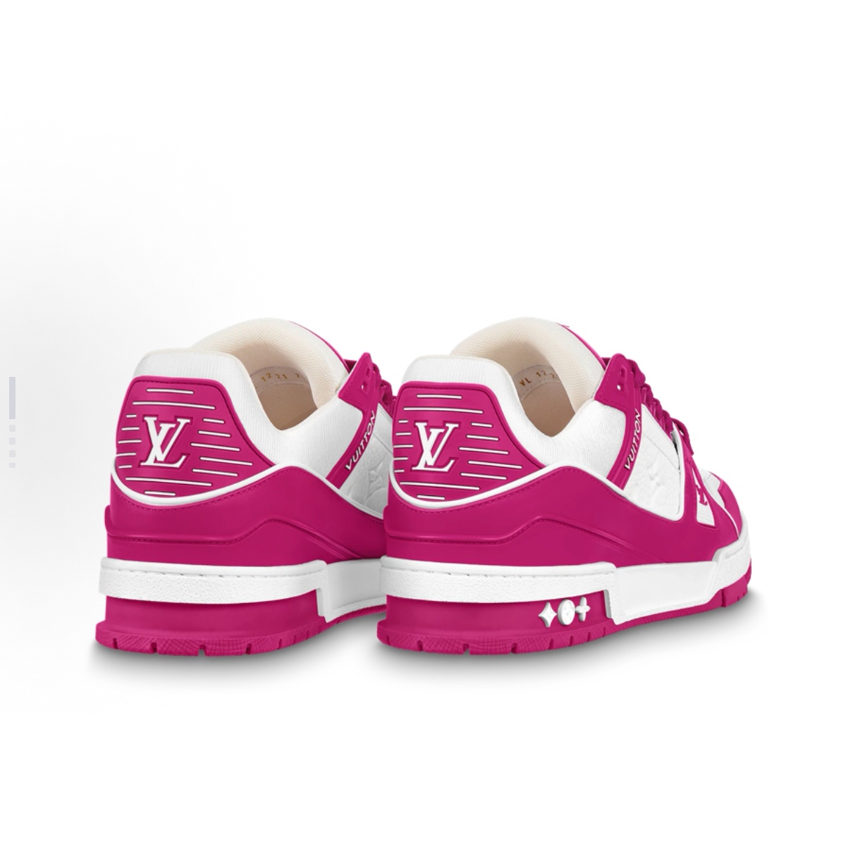 LOUIS VUITTON Trainer Leather Strap Low-Top Fashion Sneakers Unisex Pink and White