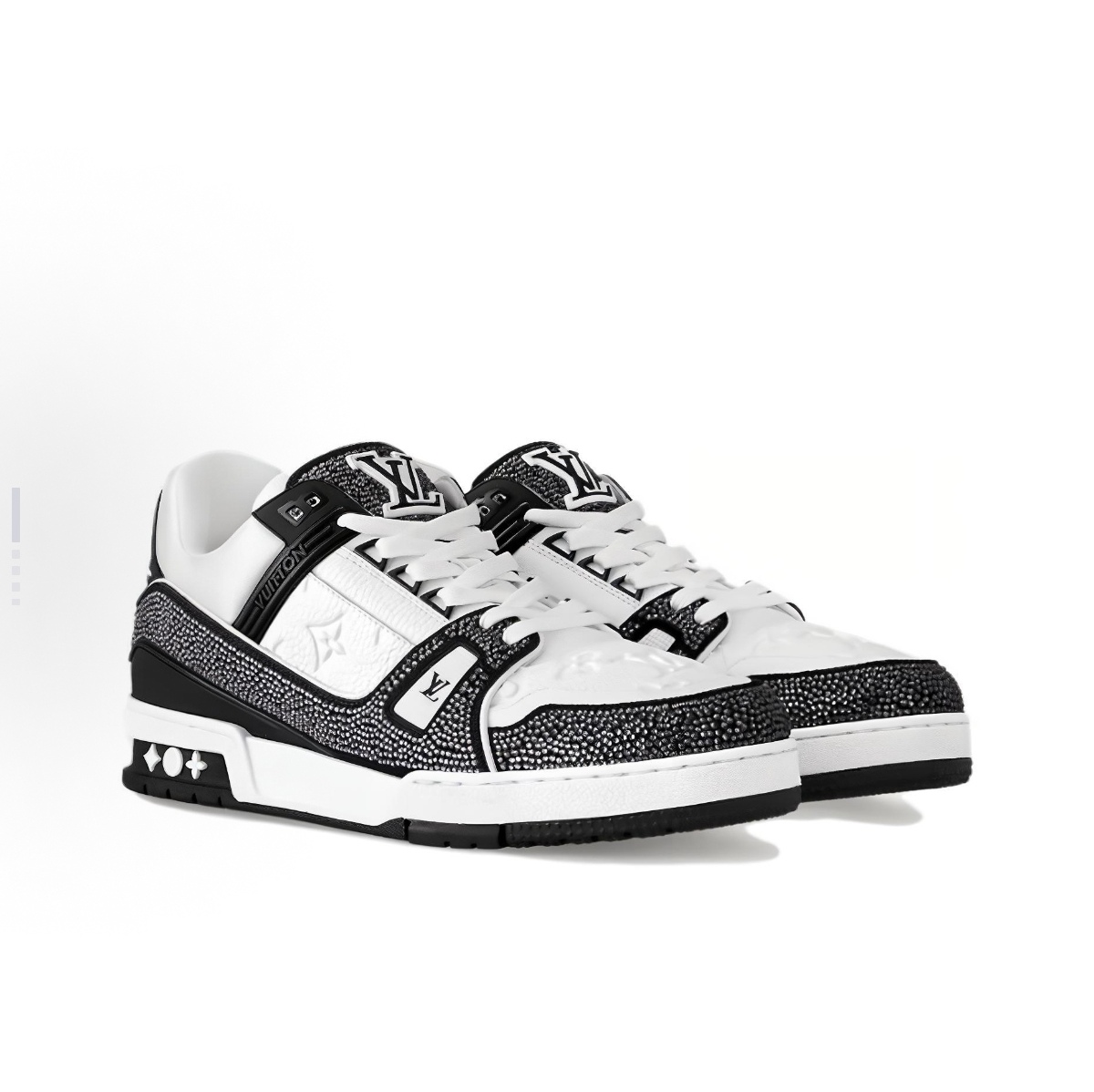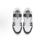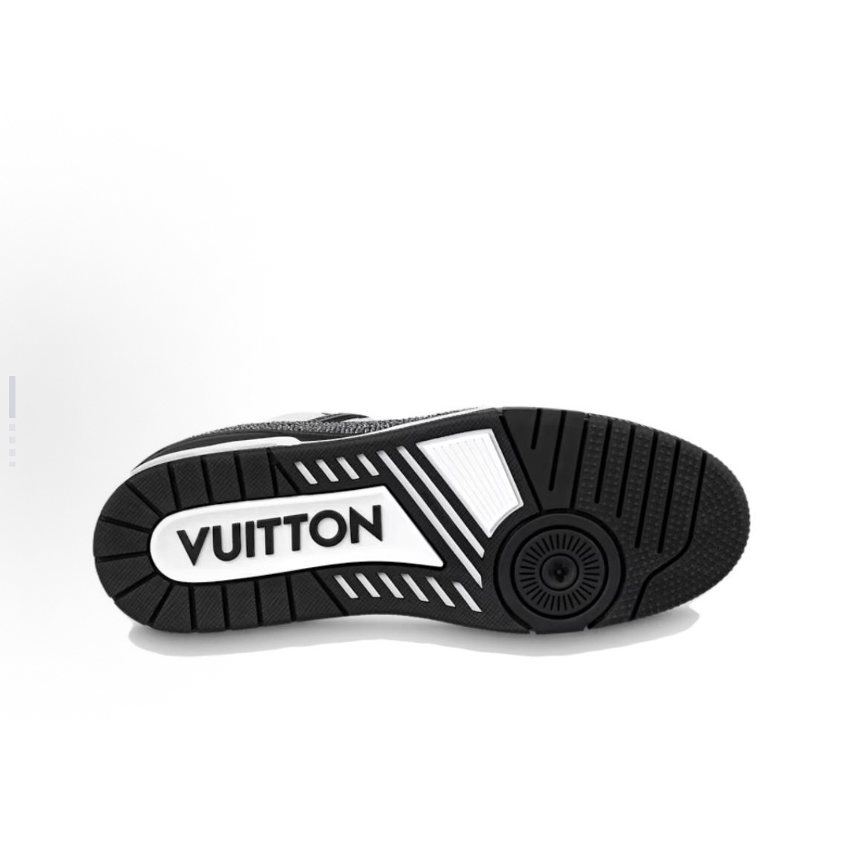 The LV Trainer sneaker is reinterpreted this season in a smart monochrome version in grained calf leather partially decorated with the Monogram pattern. Originally designed by Virgil Abloh, this iconic model was inspired by vintage basketball sneakers. It is notable for its rubber signatures and elaborately constructed upper, made of more than 80 pieces