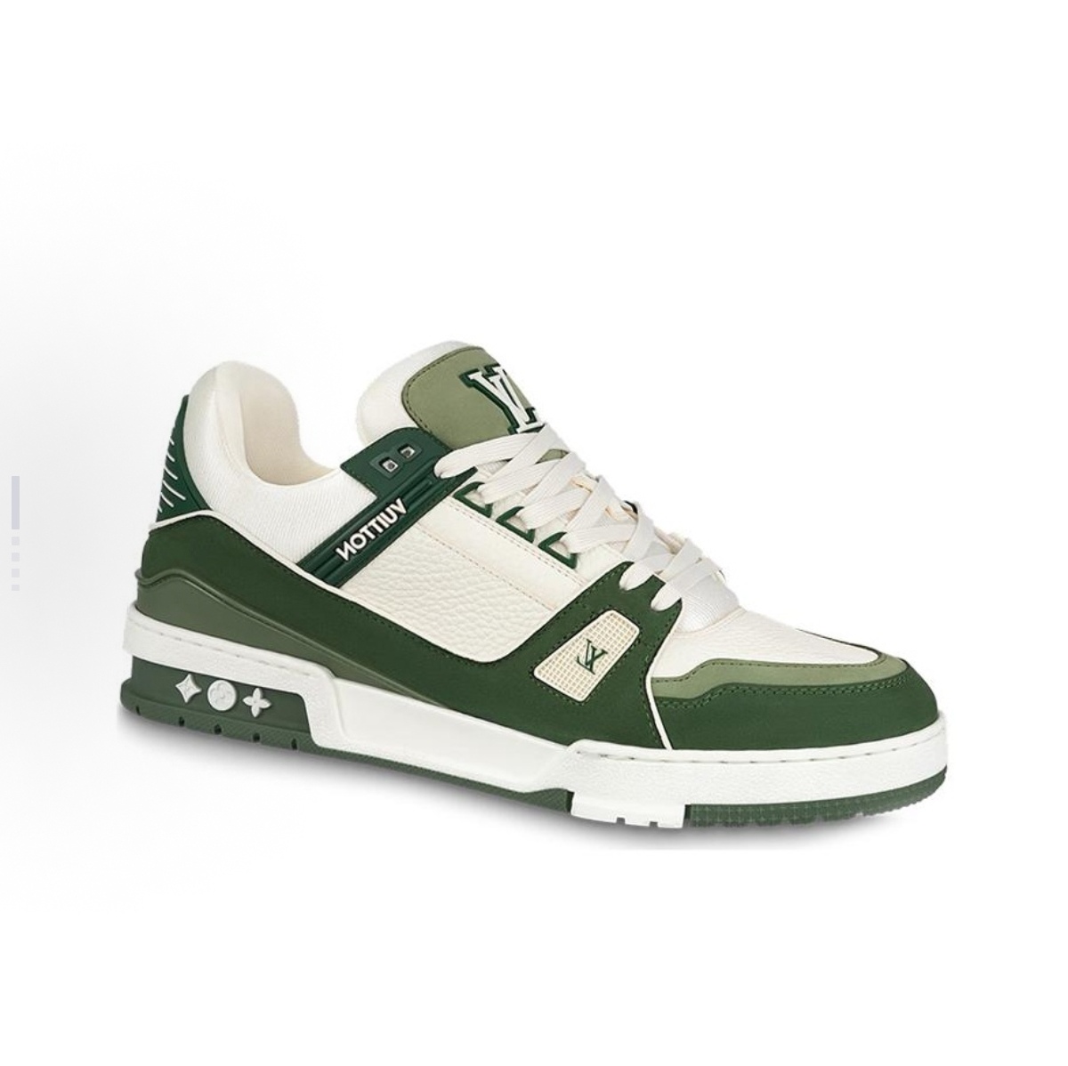 LOUIS VUITTON Trainer Round Head Tie Low Top Sneakers Men’s and Women’s Green and White